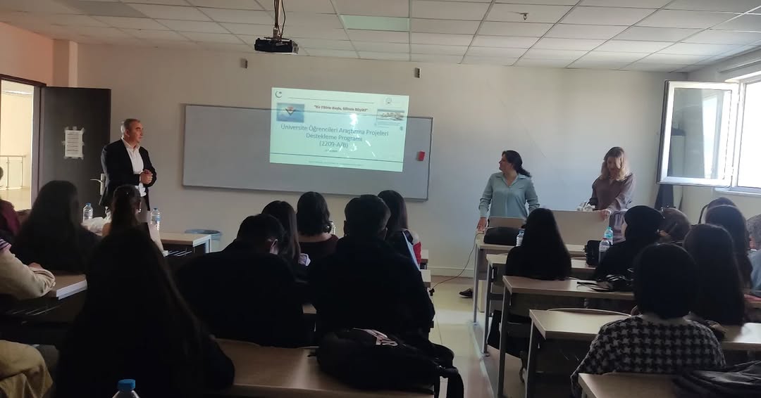 Açılış konuşmasını Proje Geliştirme ve Koordinasyon Koordinatörü Prof.Dr. Ali Osman AYAŞ yaparak öğrencilere TÜBİTAK 2209 projelerinin önemi hakkında bilgi verdi. Toplantıda Koordinatör yardımcısı Doç.Dr. Gülden Gürsoy da katılım sağlayarak araştırma kültürünün önemine vurgu yapt. Doç.Dr. Oya BAYITLMIŞ ÖĞÜTÇÜ,“2209 Proje Başvurusu Nasıl Yapılır?” başlıklı sunumunda başvuru süreçleri, proje yazımında dikkat edilmesi gereken noktalar ve proje hazırlama sürecinde öğrencilere yol gösterecek ipuçlarını paylaştı. Ayrıca, bilim söyleşileri etkinlikleri hakkında da katılımcılara bilgi verdi. Destek veren öğretim üyelerimize ve katılım sağlayan öğrencilerimize teşekkür ederiz.